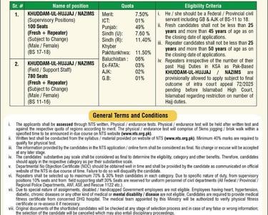 Eligible government employees (BPS-07 to BPS-18) can apply through NTS for duties in Saudi Arabia during Hajj.
